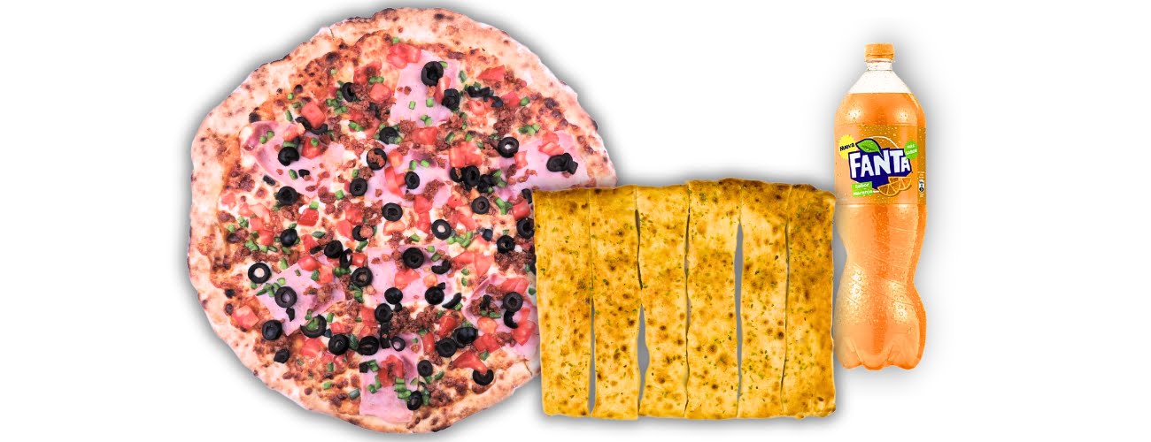 Pizza Familiar de 3 Ingredientes + Palitos de Ajo + Bebida de 1,5 Litros