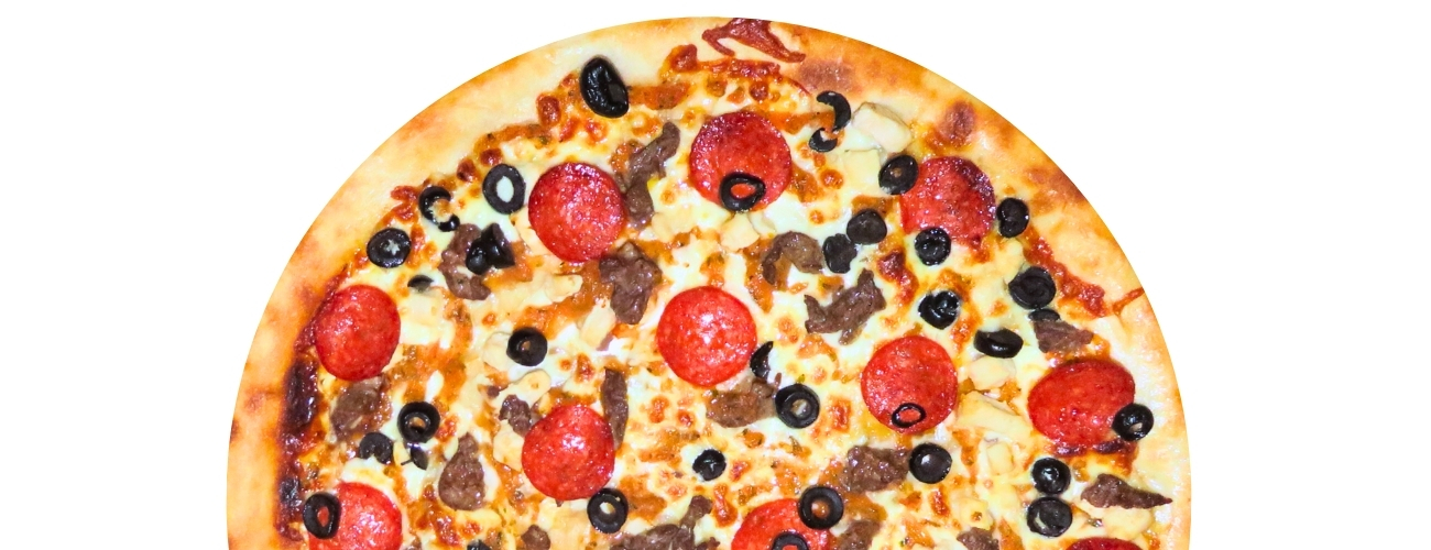 Salsa Pomodoro, Queso Mozzarella, Filetes de Carne Salteada al Ajo, Filetes de Pollo Salteado al Ajo, Pepperoni, Aceitunas.