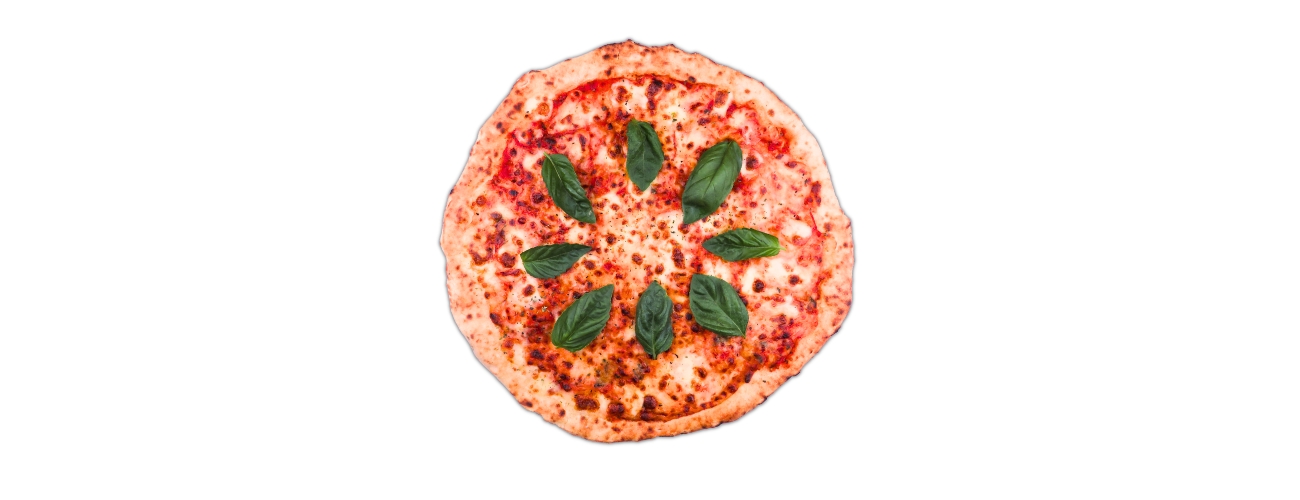 Pizza formato individual de 16 CM. Incluye Salsa De Tomates Natural, Queso Mozzarella, Albahaca.